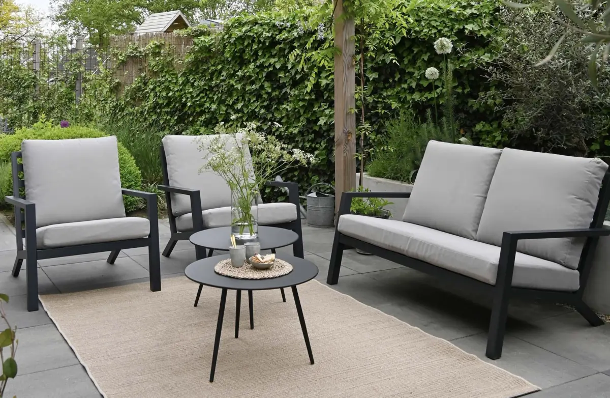 Loungebank Bezano | 2-persoons | Matt Black/Grey | Aluminium
