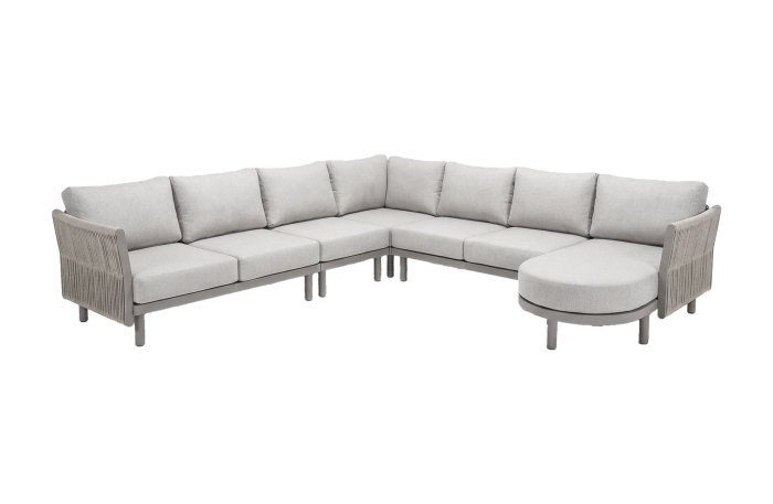 Creëer de perfecte buitenlounge met de 5-delige Cavallino loungeset. Deze set is een combinatie van een linker- en rechterbankdeel, middenelement, hoekelement en het elegante ovale bankdeel. Samen vormen ze een harmonieus geheel met zachte, afgeronde lijnen en een rustige, natuurlijke uitstraling die perfect past in moderne en organische tuinstijlen.