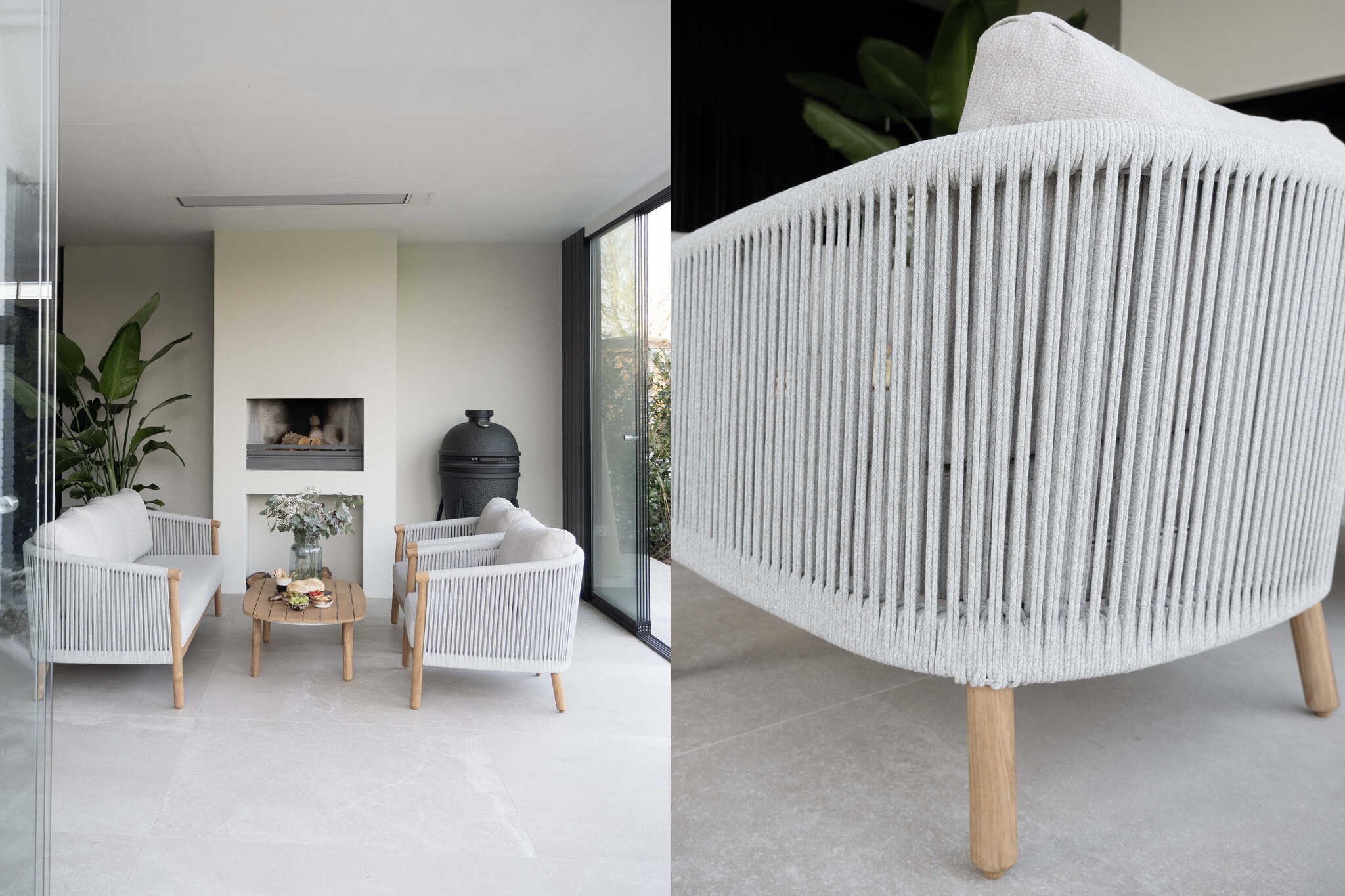 De combinatie van hoogwaardig teakhout en flexibel rope zorgt niet alleen voor een robuuste constructie, maar ook voor een verfijnde uitstraling die perfect aansluit bij de trend van natuurlijk en duurzaam buitenmeubilair. Ben je op zoek naar een luxe 3-persoons loungebank die zowel stijlvol als comfortabel is? De Es Vedra loungebank biedt alles wat je nodig hebt voor een ontspannen en elegante buitenervaring. Combineer deze bank met andere meubels uit de Es Vedra collectie voor een harmonieuze en stijlvolle buitenruimte die uitnodigt tot ontspannen en genieten.
