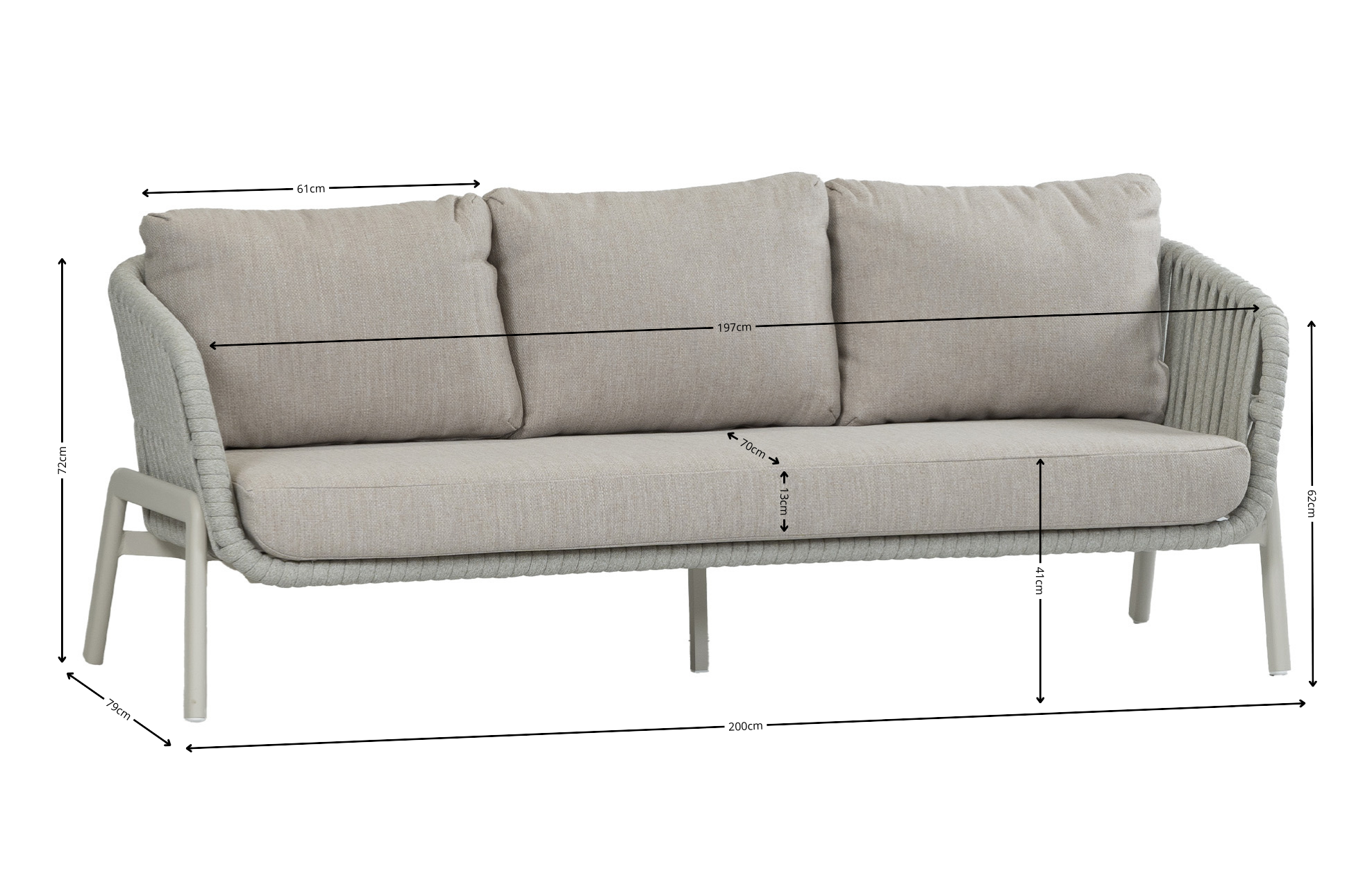 Eigenschappen Porto 3-persoons loungebank van aluminium en rope: