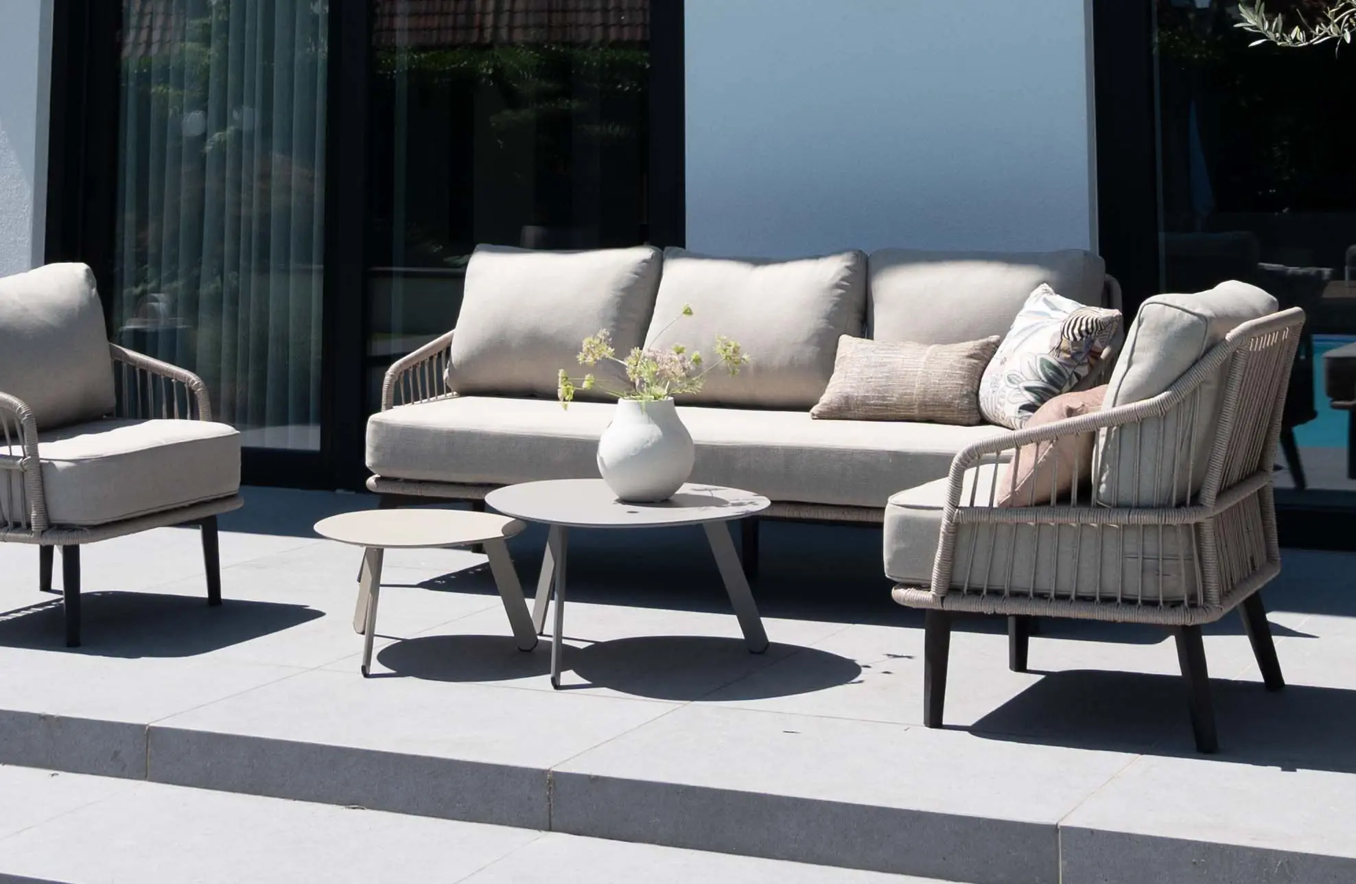 Rope loungesets zijn vooral geliefd vanwege hun unieke design en hoogwaardige materialen. Met een stevig aluminium frame en duurzaam, weerbestendig touw (rope) zien ze er niet alleen stijlvol uit, maar zijn ze ook perfect geschikt voor gebruik in de buitenlucht. Het materiaal Rope heeft een aantal voordelen: