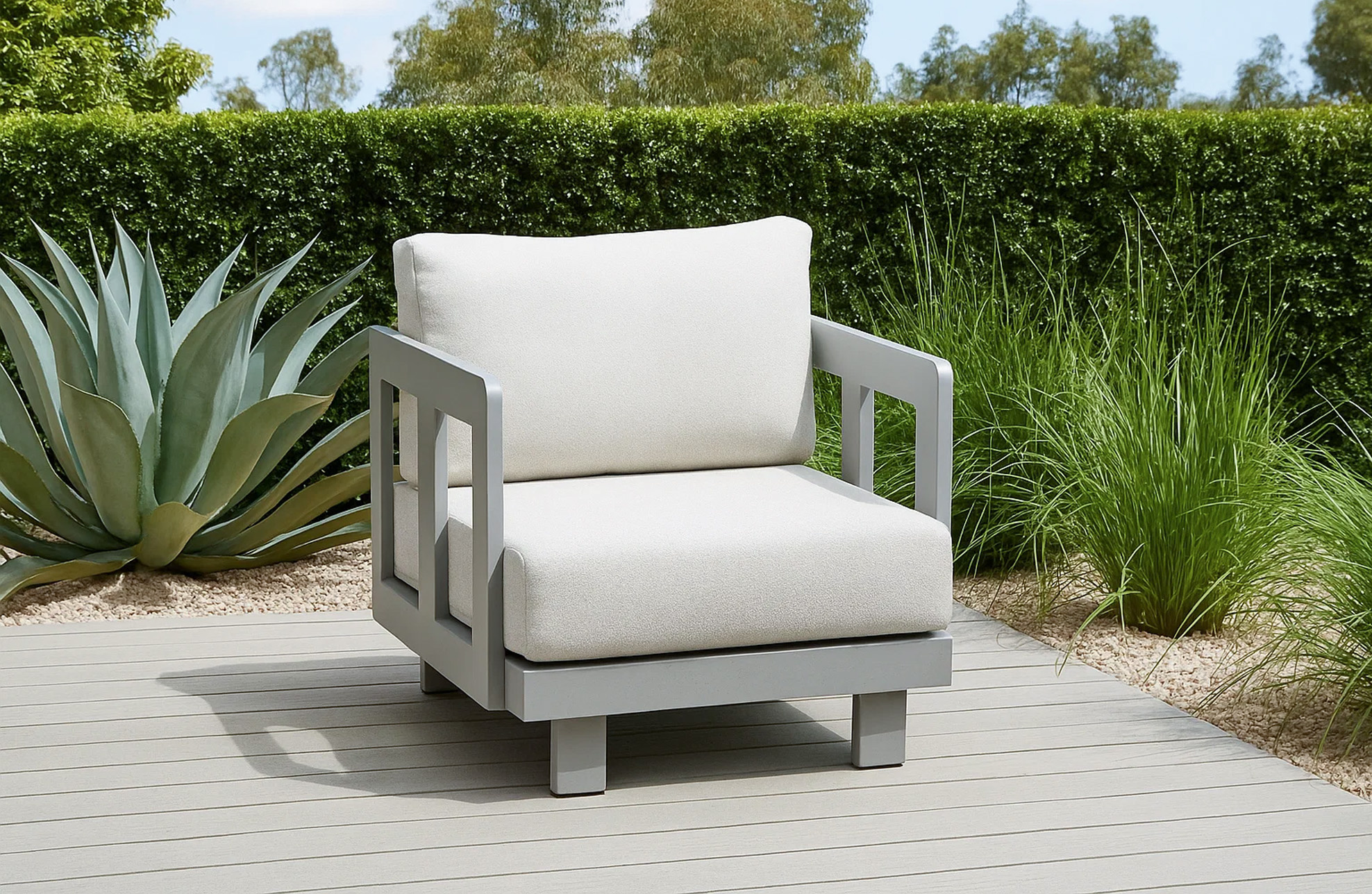 De Tulum loungestoel in de kleur Camel/Beige is de perfecte keuze voor wie een combinatie zoekt van stijl, comfort en hoogwaardige materialen. Met zijn eigentijdse design en warme uitstraling voegt deze onderhoudsvrije loungestoel direct een vleugje luxe toe aan je tuin, terras of patio. Het frame van de Tulum loungestoel is gemaakt van aluminium, wat zorgt voor een moderne uitstraling. De extra dikke loungekussens in een zachte zandkleur maken de Tulum loungestoel niet alleen comfortabel, maar ook stijlvol. De Tulum loungestoel is ideaal als losstaand item, maar combineert ook prachtig met andere elementen uit de Tulum serie, zoals de loungebank en de bijpassende loungetafel. Dankzij de hoogwaardige materialen is de stoel bestand tegen de elementen, al raden we aan om de kussens op te bergen of af te dekken met een hoes wanneer deze niet in gebruik zijn, zodat ze lang mooi blijven.