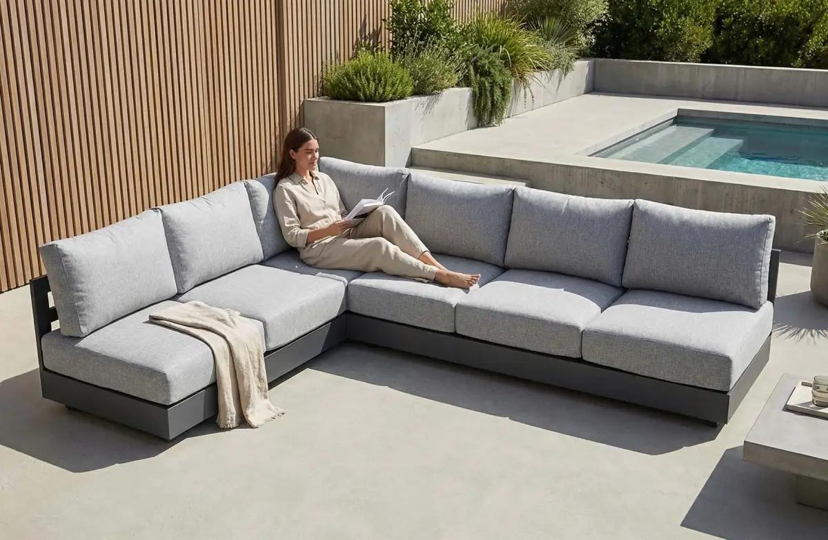 Ben jij ook helemaal fan van moderne aluminium tuinmeubelen en zou jij willen uitbreiden met meerdere items? Dan is de Fosega helemaal iets voor jou! Stel je eigen loungeset samen met de Fosega losse modules loungeset-serie. De 2-delige hoek loungebank vormt de basis van de loungeset Fosega. Deze kun je vervolgens uitbreidden met de andere losse modules van de fosega lounge-serie. De Fosega lounge-serie bestaat uit een hoek loungebank, 3-persoons loungebank, middenelement, loungestoel, hocker, loungetafel(s) en bijzettafels(s). Kortom, eindeloos combineren met de Fosega!