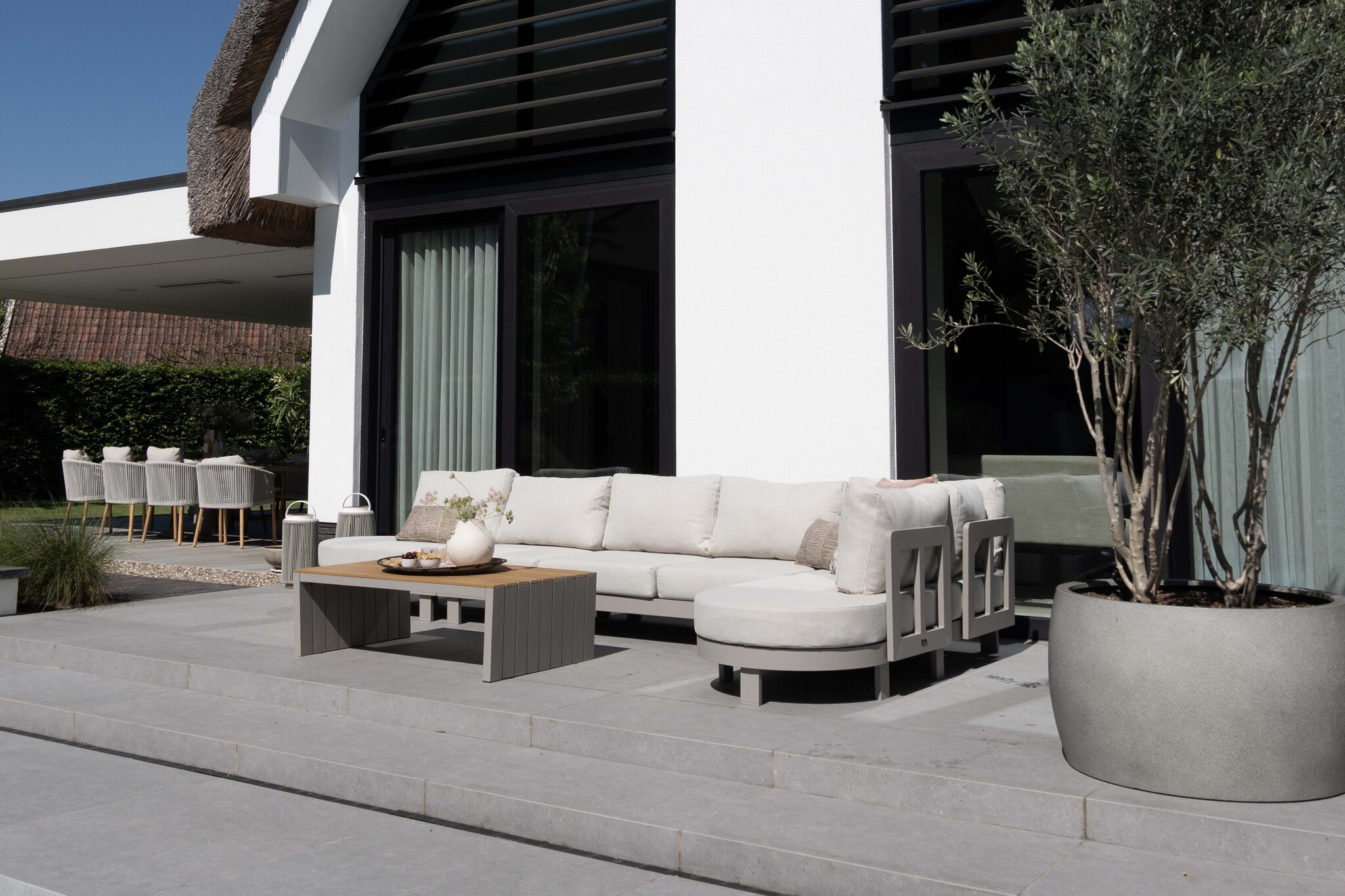 Het Tulum middenelement wordt geleverd met dikke, zachte kussens in een verfijnde zandkleur. Deze kleur harmonieert prachtig met de Camel kleur van het frame en voegt een natuurlijke, rustige sfeer toe aan de loungeset. De kussens zijn ontworpen voor buitengebruik en bieden optimaal comfort, perfect voor lange, ontspannende momenten buiten. Wel raden wij altijd aan om de loungekussens droog op te bergen wanneer er een langere tijd geen gebruik van wordt gemaakt.