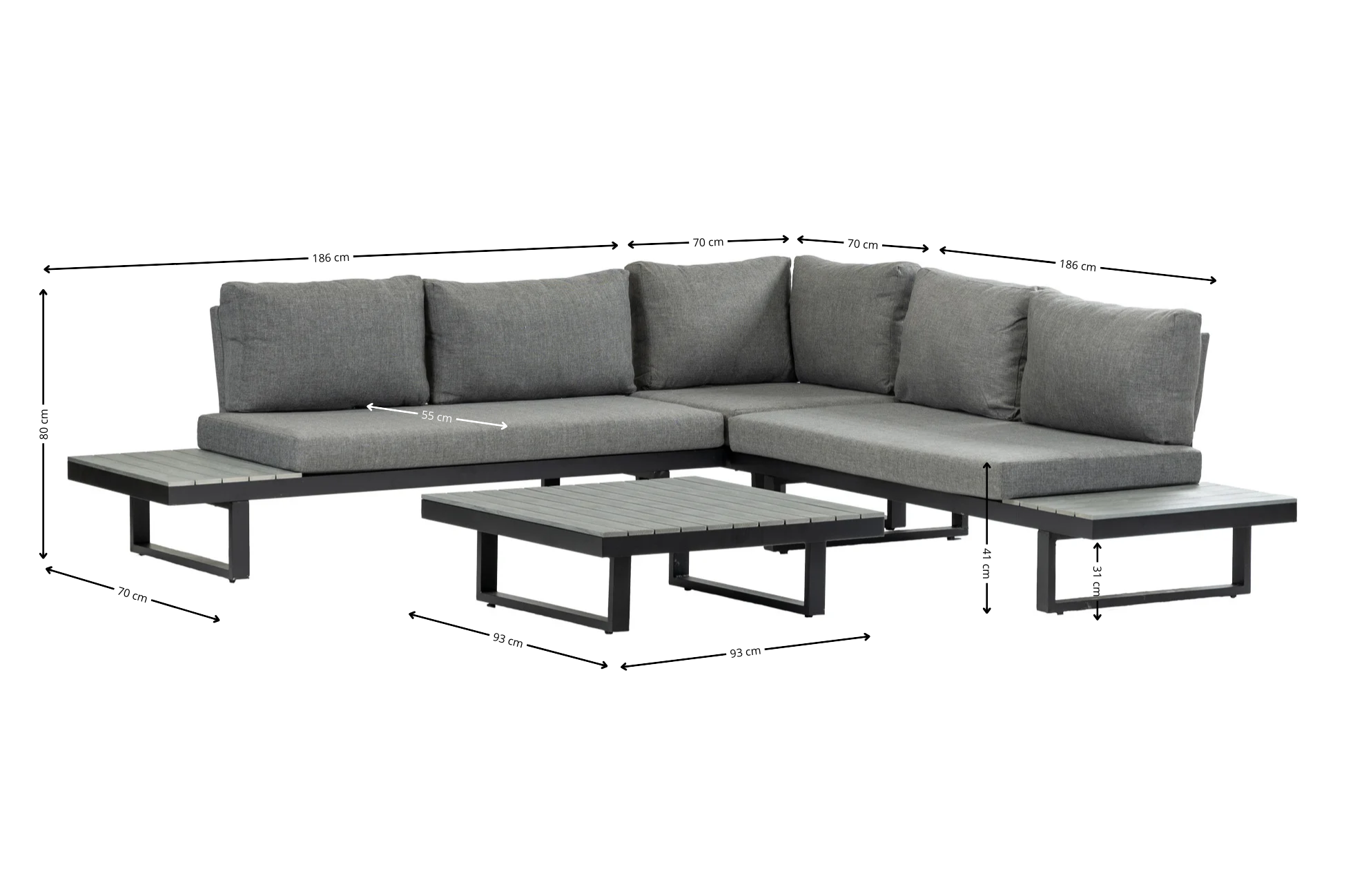 Flexibiliteit en comfort komen samen in de Hoedspruit Plateau Loungeset. Deze moderne hoek loungebank bestaat uit twee losse loungebanken en een los hoekelement, waarmee je eenvoudig een royale hoekopstelling creëert. Of je nu kiest voor een compacte indeling of één grote hoeklounge – jij bepaalt de opstelling die past bij jouw tuin en moment. Met ruimte voor ruim zes personen is deze loungeset perfect voor gezellige borrels en relaxte middagen. De combinatie van gepoedercoat aluminium en onderhoudsvriendelijk polywood zorgt voor een stijlvolle, duurzame set die weinig verzorging nodig heeft.
