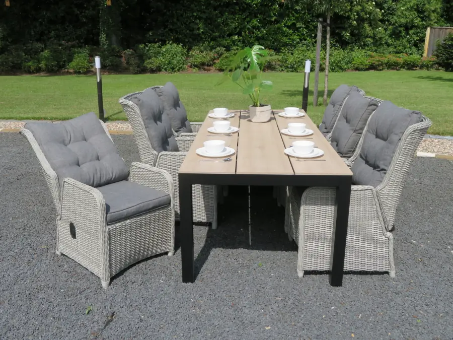 Een wicker tuinset met rechthoekige tafel past in iedere tuin, in een maat die je zelf bepaalt. Met een tafel die dezelfde kleur wicker heeft als de stoelen creëer je een gezellige warme uitstraling die goed aansluit bij bijna iedere stijl tuin. Met een rechthoekige wicker tuintafel maak je meteen het hele terras compleet. Let erop dat je de juiste afmeting van terras hebt voor de grootte van je tafel en stoelen. Wicker is een onderhoudsvrij materiaal, maar om hem zo mooi mogelijk te houden willen we je toch aanraden het tafelblad dat vaak gemaakt is van keramiek goed te onderhouden! Zit jij nog met de vraag hoe je wicker goed onderhoud? Lees dan in de kennisbank meer over wicker. Wil je meer tuinsets bekijken dan alleen deze wicker tuinsets? Bekijk dan ons hele assortiment aan tuinsets.